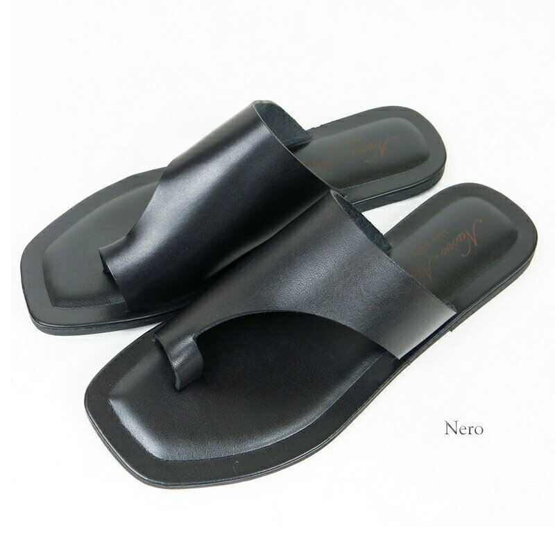 ■メーカー希望小売価格はメーカーカタログに基づいて掲載しています■model's fitting item■ model :160cm/53kg 23.5cm color:Nero 37size ■Nuovo Nicar (ヌーヴォ ニカール) ■ W2172 トングサンダル Lady's 【2021春夏最新モデル】 なめし革の光沢が美しいトングタイプのスタイリッシュサンダル 深みのあるなめし革の光沢を最大限に活かす甲のデザイン。