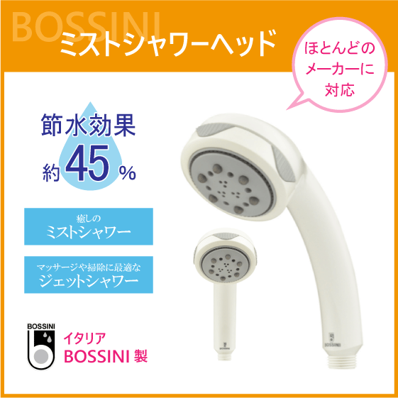 ボッシーニ ミストシャワーヘッド 節水 浴室 お風呂 取替用