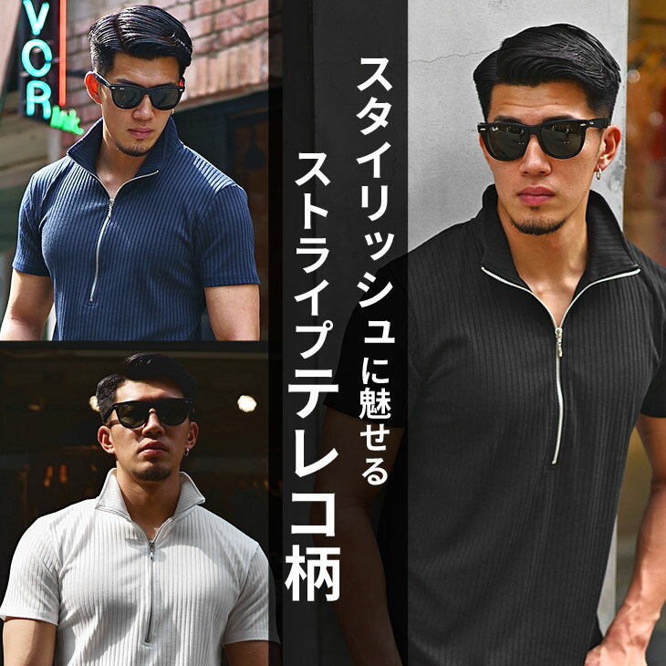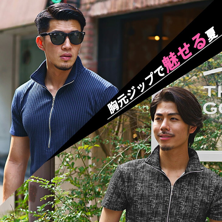 ハーフジップ ポロシャツ メンズ ポロシャツ メンズ 半袖 ゴルフ 半袖ポロシャツ メンズ 半袖ポロ メンズ 細身 タイト カットソー メンズ ハーフジップ 大きいサイズ XL LL 夏 夏服 夏物 メンズファッション リゾート サーフ系 お兄系 オラオラ系 ちょいワル