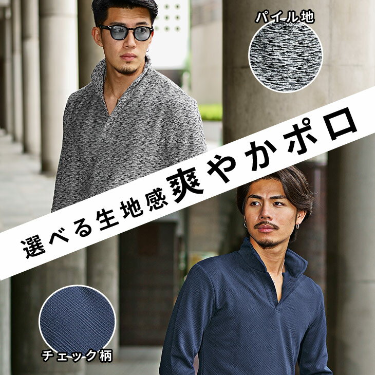 【選べる7分袖ポロシャツ】■Design/デザインさりげなく刻み込むチェック柄とパイル地によるリラックス感を楽しめるポロシャツ。