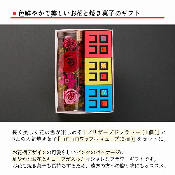 送料無料 コロコロキューブ & プリザーブドフラワー セット 御中元 お中元 そのまま飾れる スイーツ 花 おしゃれ かわいい ギフト お菓子 プレゼント 花とスイーツ コロコロワッフル お取り寄せスイーツ 洋菓子 誕生日 贈り物 夏ギフト 暑中見舞い