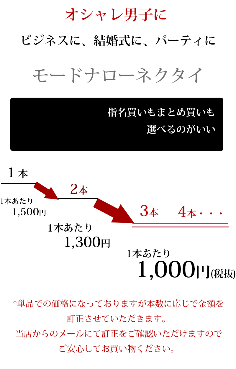 【42柄から選べる ビジネスナロータイ】 チェック ストライプ 小紋などビジネスシーンにピッタリのナローネクタイお好みの柄を42柄から お選びください2本・3本と買えば買うほどお得に お好みのナローをまとめるとお得に。