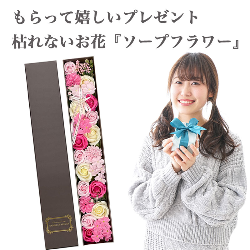 ソープフラワーとは? 石鹸素材で作られた造花のことで、運搬中に 枯れることもなく贈り物にオススメです。