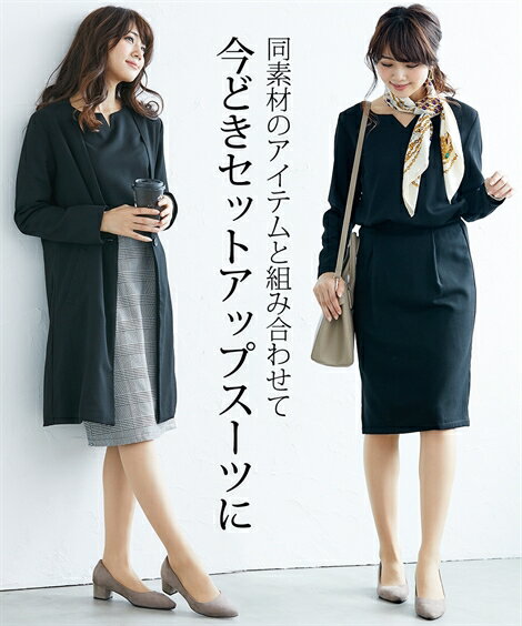 スカート ひざ丈 レディース タックタイト セットアップ 対応 オフィス スーツ グレンチェック/黒 M/L/LL ニッセン nissen