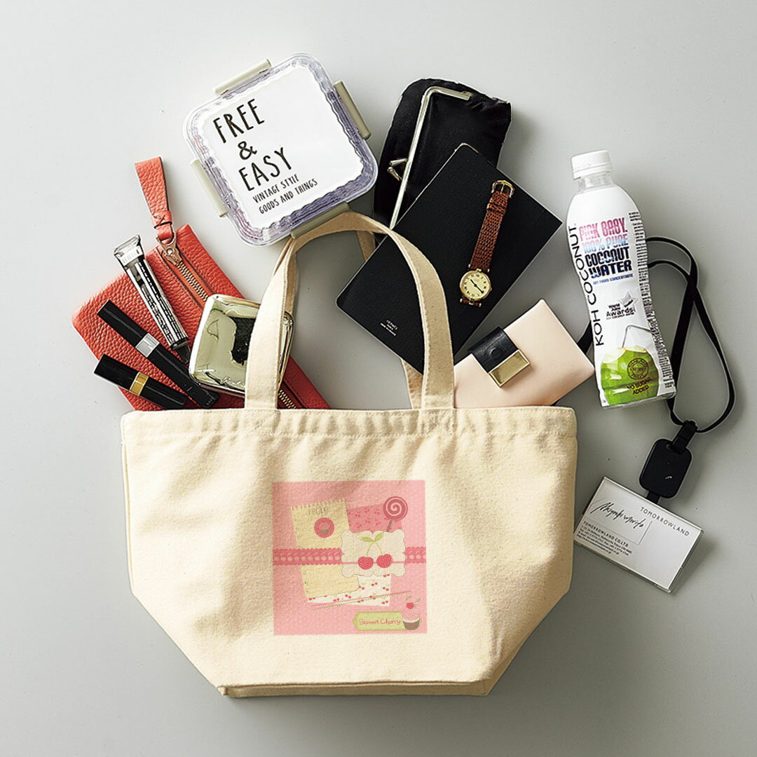 ・ランチはもちろん、ちょっとしたお出かけにも、ちょうどいいミニトート 素材 綿 100% キャンバス注意事項 画像はサンプルですので、デザイン部分の大きさが若干異なる場合があります。